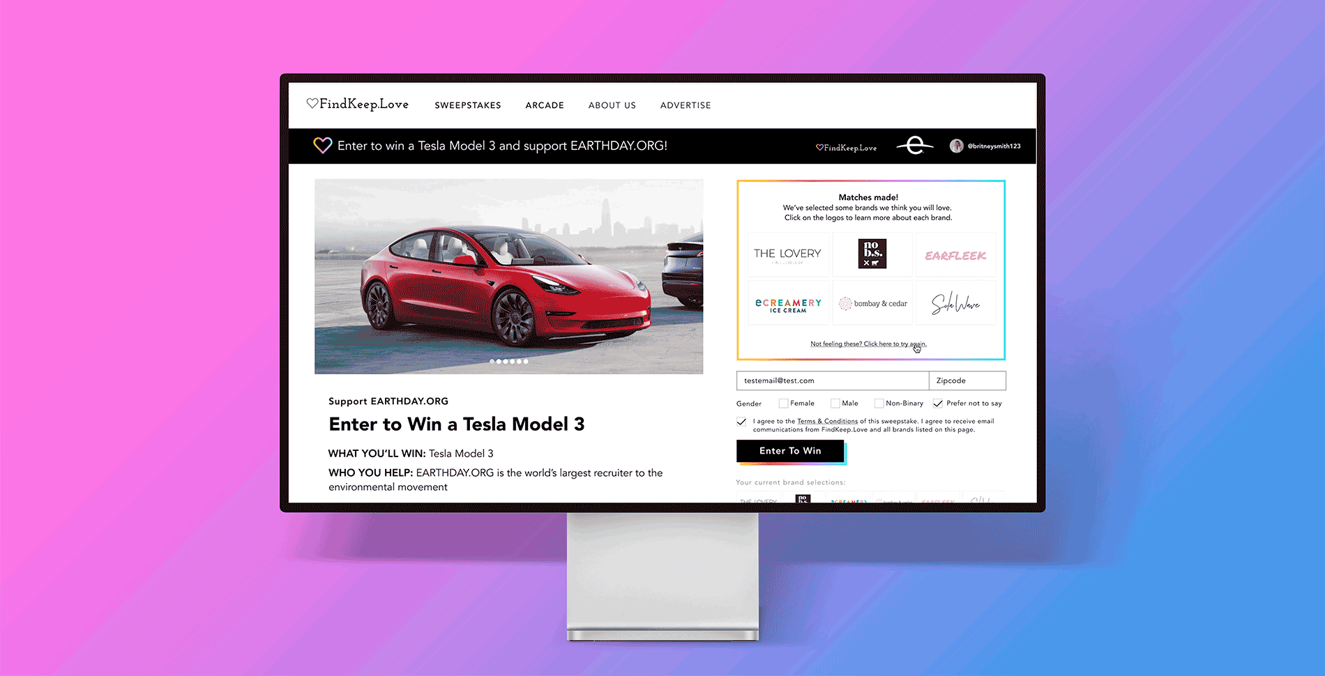 When they are satisfied with their selections, they can continue on to enter the giveaway. Upon entering the giveaway, the user will be opted-in to the brands' email marketing and will receive free gifts or promo codes from the brands.